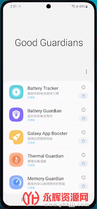三星Good Guardians是一套非常强大的系统优化工具箱软件。这款软件可以提升app性能、恢复已删除的文件、跟踪app耗电量和时间等。同时还有散热功能,可以让手机保持合适的温度,并查看手机为什么会变热。使用起来放心又安心。如果您对这款软件感兴趣的话,欢迎您来永辉资源网下载体验!