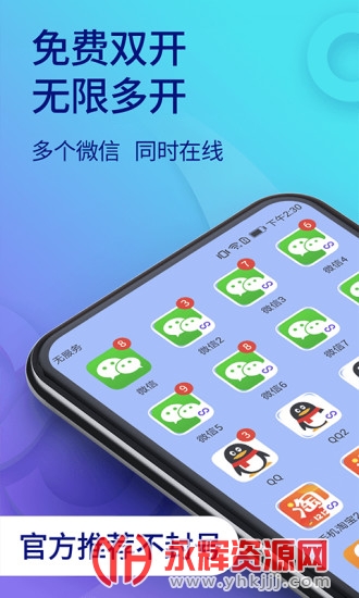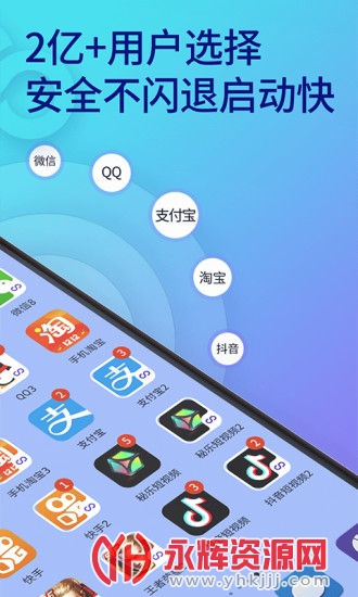 全球首创应用多开分身功能,更稳定的微信多开宝,完美支持微信多开、QQ多开、派派多开、微博多开、抖音多开、游戏多开等所有应用无限多开分身,依托独立内存管理机制,手机无限多开不卡顿