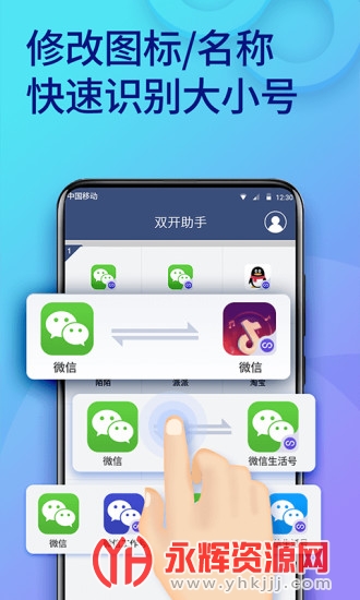 多开、分身或双开的应用如微信多开、微信分身、微信双开等可自定义图标、名称及添加到桌面等,方便快捷