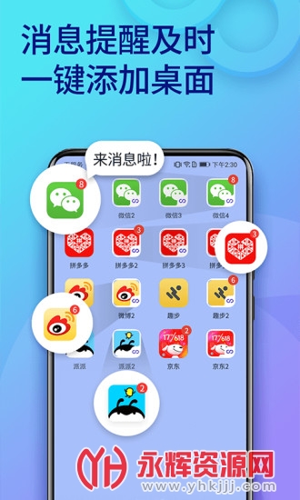 作为全球首款应用双开App,支持微信分身、微信双开、微信分身版、QQ双开、派派双开、抖音双开、双开、拼多多双开、全民k歌双开、语音双开、陌陌双开等所有应用双开分身,双账号同时在线更欢乐