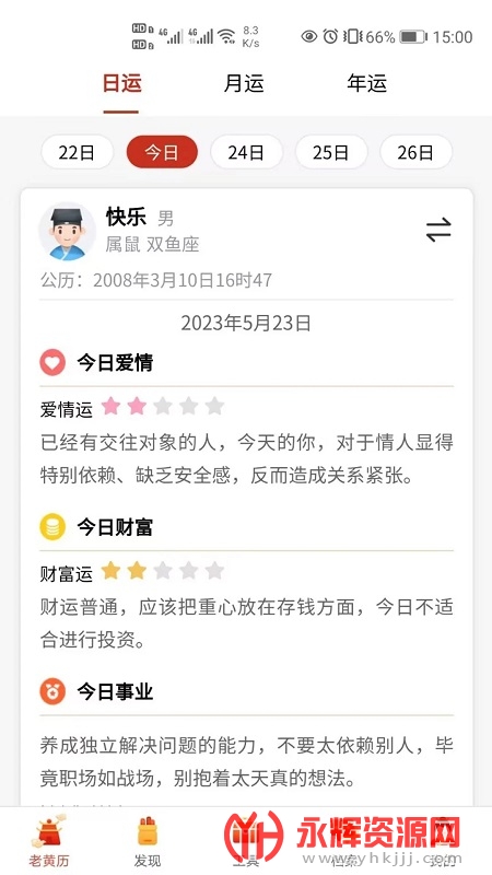神算堂老黄历app是一款基于中国传统农历的应用软件,通过日历和黄历两种方式,为用户提供每日宜忌、节气、吉凶、星座运势等信息,并且还有每日生肖运势、财运指南、求签解梦等功能。同时,还可以根据用户的出生时间和地点进行八字测算,提供个性化的命理分析。神算堂老黄历app涵盖了丰富的内容,不仅能够满足用户日常娱乐需求,也可以帮助用户更好地了解中国传统文化。
