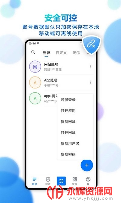 登录易是一款功能强大的移动端账号密码管理软件。这款软件能够使得用户能够随心所欲地管理自己的账号和密码,简化各种网站和软件的登陆操作,并支持账号信息备份。使用登录易能够提高安全性并减轻用户记忆负担。如果您对这款软件感兴趣的话,欢迎来永辉资源网下载体验!