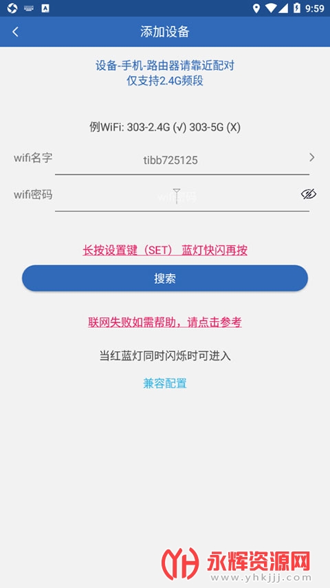 4、根据自己的需求可以进行选择,这里我用wifi举例,输入自己的wifi名称和密码后点击搜索便能够进行使用了。