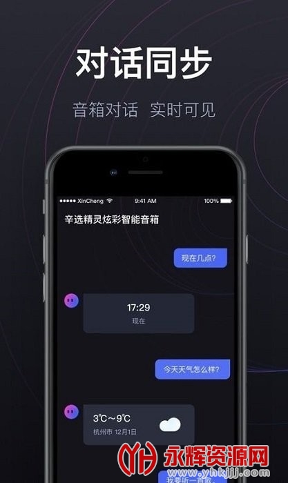 辛选精灵智能音箱app安卓版是一款非常专业的移动端智能音箱管理工具软件。这款软件适用于辛选精灵智能炫彩音箱。用户可以通过该软件随时在线控制音箱,查询和设置相关数据,进行网络配网,发送指令和语音互动交流,播放音乐等功能。同时还可自动记录对话记录,方便用户查看。如果您度这款软件有需求的话,不妨来永辉资源网下载体验吧!