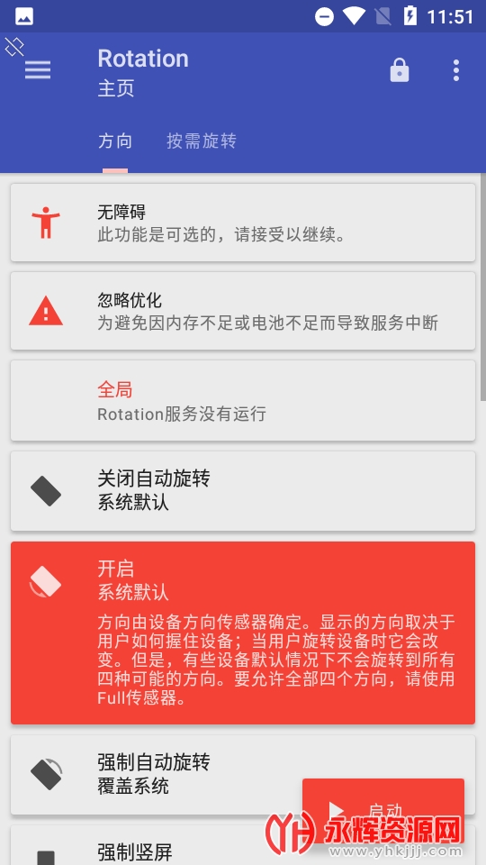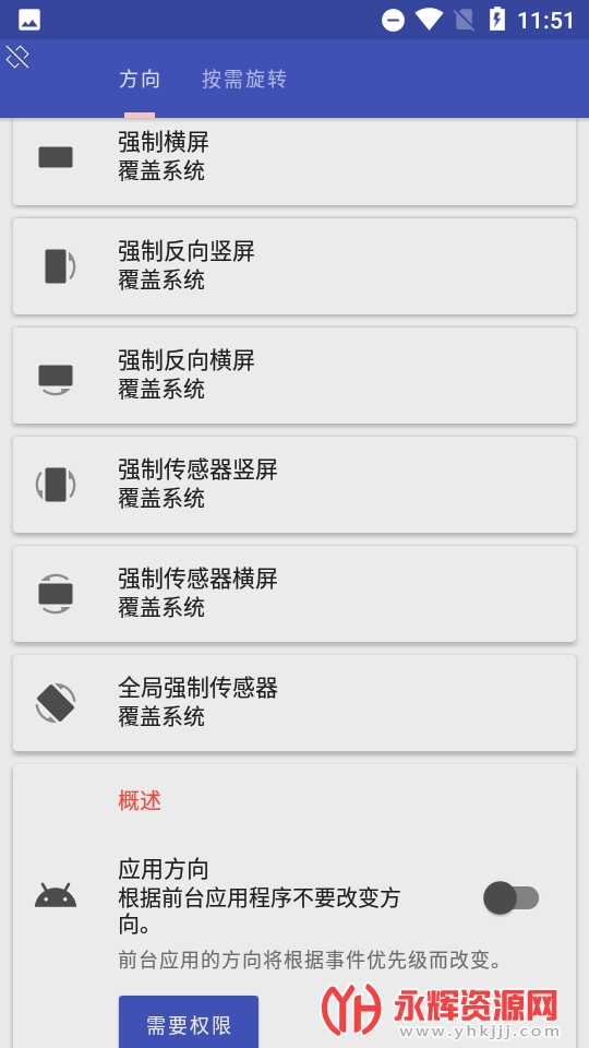 Rotation强制横屏软件是一款手机强制旋转屏幕工具,可以让任何软件都进行屏幕旋转,还能设置旋转的方向。支持通话、锁定、耳机、充电、停靠栏和前台应用等事件,并根据优先级确定方向。软件运行流畅,使用也非常方便。如果您对这款软件感兴趣的话,不妨来永辉资源网下载体验一番吧!