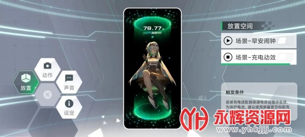 具备多种设定,包括放置、动作、皮肤和声音等,以满足用户的使用需求。