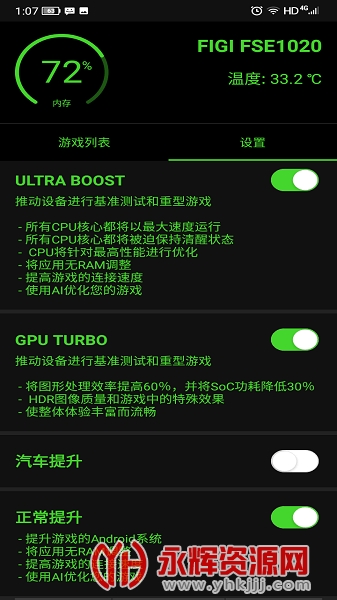 游戏助推器功能:增压+提供游戏助推器功能,可优化游戏性能,提升游戏流畅度。它可以关闭后台运行的无关应用程序,释放系统资源,避免游戏卡顿和延迟。