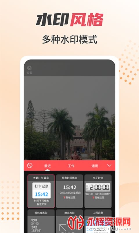 2、多种水印效果:照片水印相机App支持多种水印效果,包括文字水印、图像水印、时间日期水印等,满足不同用户的需求。