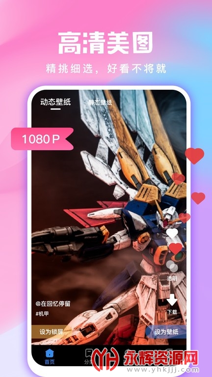 百万高清壁纸:全民免费壁纸拥有百万级高清无水印的透明壁纸,无论您是喜欢自然风景、动物植物、抽象艺术还是明星影视,都能在这里找到漂亮精美的壁纸。