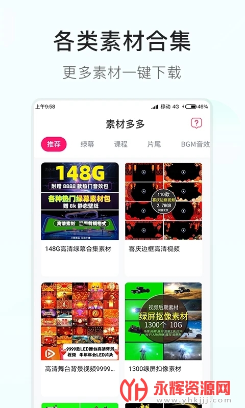 5、多种素材合集:应用内还有各类素材合集,方便用户按照不同主题和需要寻找所需的素材,提高使用效率。
