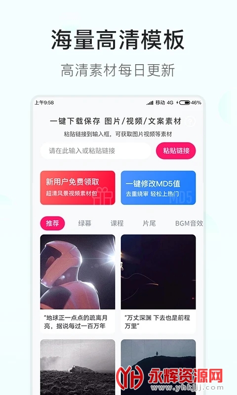 1、海量高清模板:提供丰富的高清模板,满足用户多样化的素材需求。
