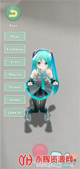 4. 定制形象:提供不同装扮的初音未来,用户可以修改角色的姿势、嘴型、眼睛、眉毛等部位,定制出自己的专属形象。