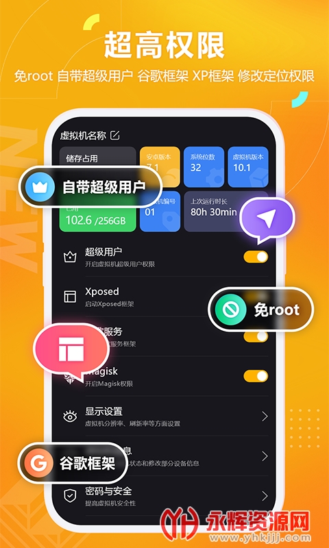 黑猫盒子是一款功能强大的移动端虚拟机应用软件,又称为黑猫盒子虚拟机。该软件能够独立运行,支持一键切换系统,所有操作都在独立封闭的虚拟机环境中进行,与原系统安全隔离。黑猫盒子内置了xposed框架和谷歌服务框架,并且具备免root功能,满足安卓用户的各种需求,让用户能够尽情玩机不受限制。如果您对这款软件感兴趣的话,不妨来永辉资源网下载体验一番吧!
