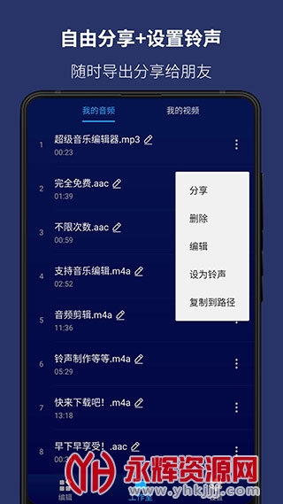 1、剪切:支持音频文件的剪辑,轻松剪切需要的片段。