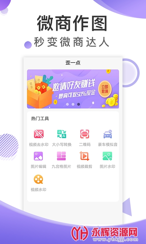 多功能营销应用:除了截图制作,歪一点还提供了丰富的营销功能,为微商和创业者提供全方位的支持。