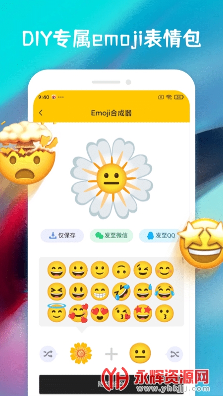 而且,操作简单,没有技术门槛,每个人都能成为Emoji创作大师!快来永辉资源网下载Emoji合成器,展示你的独特创意,点亮沟通的火花吧!