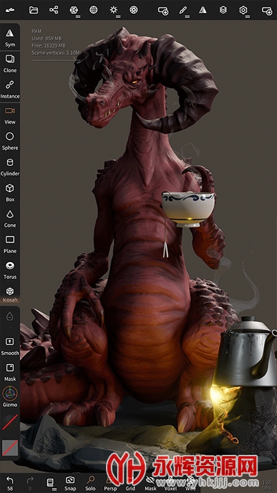 Nomad Sculpt的便捷性和专业性是其最大的优势。无论您身在何处,它都将建模工作融入到手机中,让您利用碎片化时间高效完成工作。与PC端相比,Nomad Sculpt的操作界面简单易懂,即使是初学者也能轻松上手。