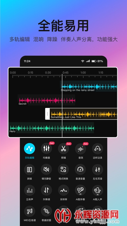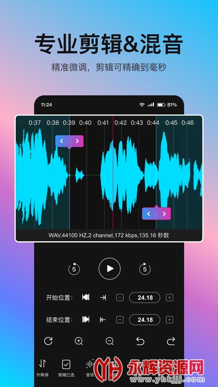 1、音编美声的特色在于其丰富的音频处理工具和灵活的编辑功能。用户可以选择和调整各种音频效果,创造个性化的音频处理效果。