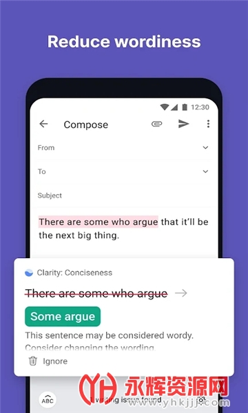 2、全面的语法检查:Grammarly App不仅会检查单词的拼写错误,还会分析整个句子的结构和语法,提供修正建议。它可以捕捉到常见的语法错误,如主谓一致、动词时态、冠词使用等,帮助用户改善英文表达的准确性和流畅度。
