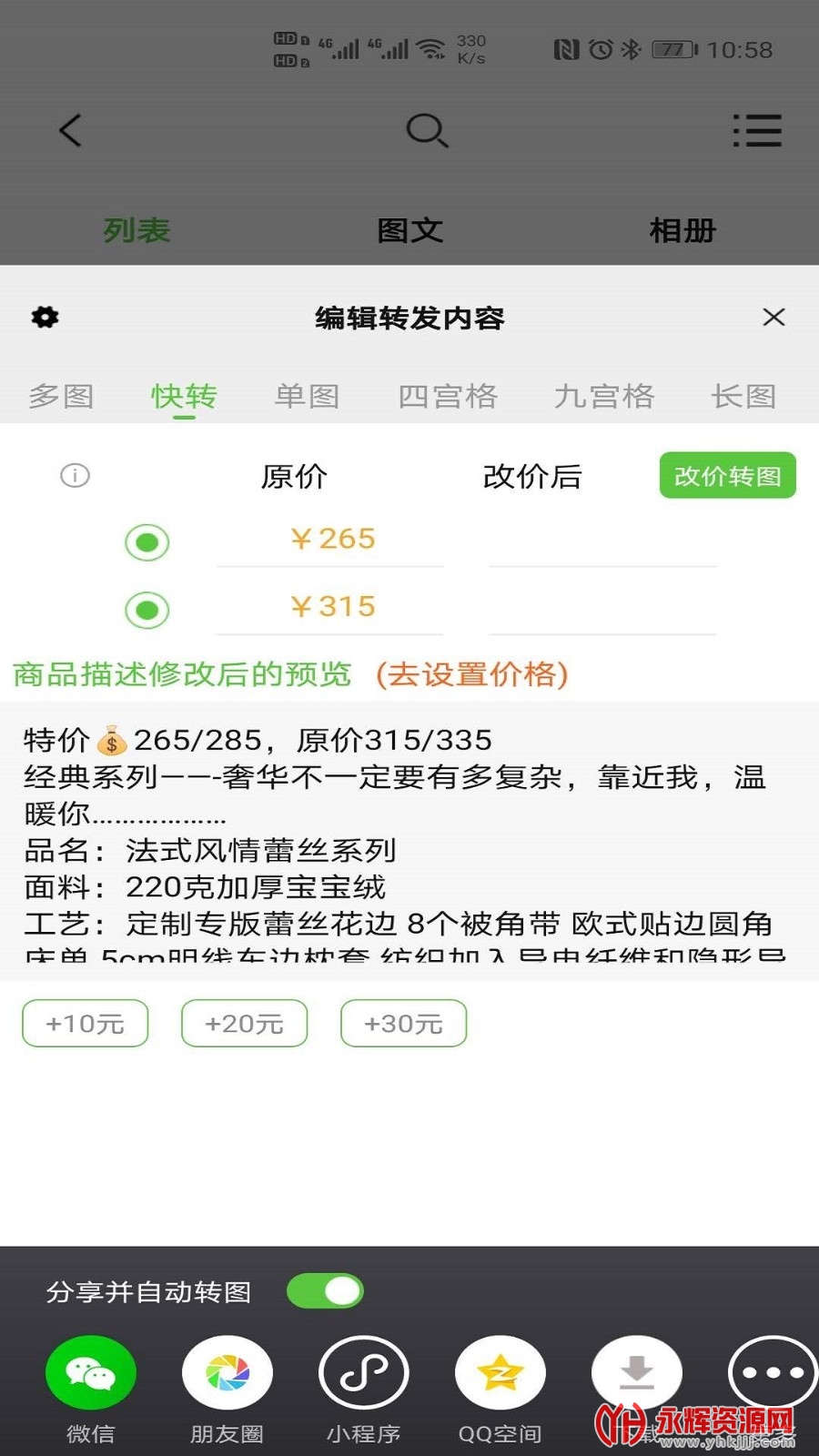 一键转发朋友圈:制作完成的相册可以通过一键操作快速转发到朋友圈或微信好友,方便快捷地传播商品信息。