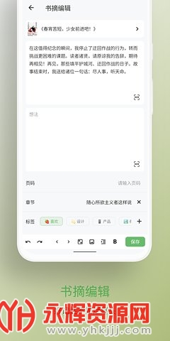 纸间书摘是一款非常好用的移动端手机读书笔记应用软件。这款软件支持多个主流阅读app导入和文本识别功能。该软件支持一键导入多个主流阅读app,方便快速获取书籍和笔记,内置文本识别功能,帮助用户快速进行摘抄和标注,还提供读书笔记功能,便于用户记录重要的阅读心得和想法。纸间书摘支持一键导入和文本识别功能,让用户能够轻松获取书籍和进行摘抄。如果您对这款软件感兴趣的话,不妨来永辉资源网下载体验一番吧!