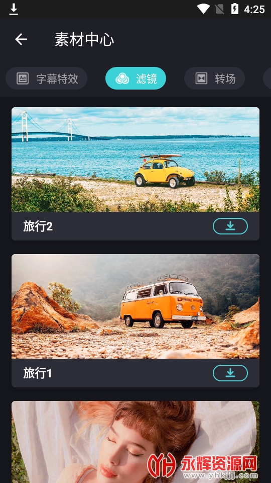 滤镜素材:VCUT内置了海量滤镜素材,可以让用户为视频添加各种不同风格的滤镜效果。