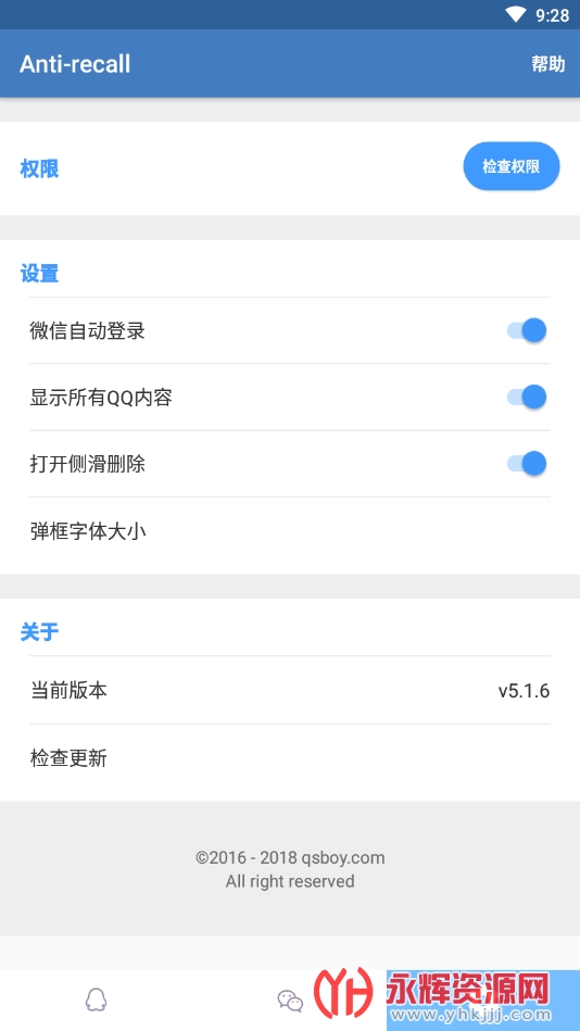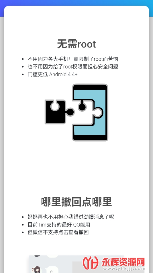 Anti-recall是一款功能强大、安全可靠的社交消息防撤回工具,支持微信、QQ等多种社交平台。它帮助用户轻松查看对方撤回的消息,不再错过任何重要信息。操作简单易用,保护隐私,无需root操作即可直接使用。该软件可以查看对方撤回的文字、图片等内容,适用于微信、QQ等多种社交平台,无需进行手机Root操作即可使用,完美确保用户的个人信息安全。如果您对这款软件感兴趣的话,不妨来永辉资源网下载体验一番吧!