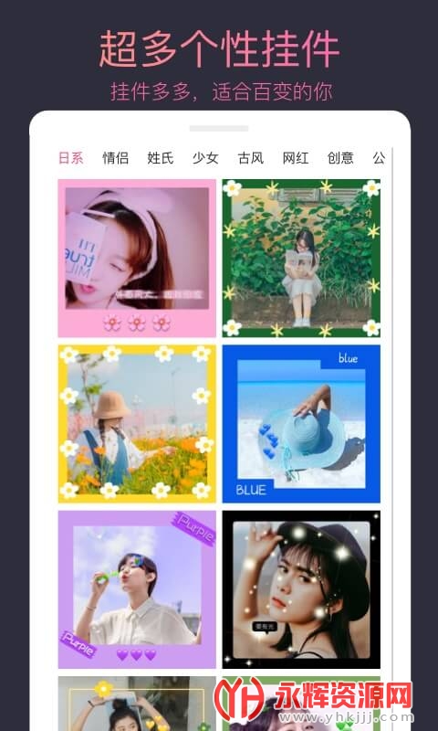 头像制作大师是一款实用的移动端手机头像制作应用软件。通过这款软件,您可以轻松制作出各种个性化的头像,无需在百度或其他软件上寻找,只需要亲手制作,让您的头像与众不同。头像制作大师能够为用户提供丰富的制作工具和素材玩法,让用户能够制作多种类型的头像,满足个性化需求,用户可以每天自由更新高清头像,保持头像的新鲜和时尚。如果您对这款软件感兴趣的话,不妨来永辉资源网下载体验一番吧!