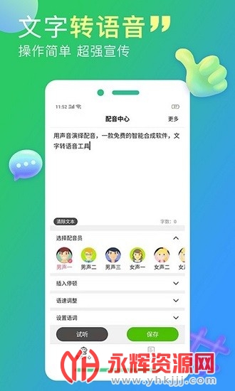 文字转语音功能:配音家能够将文字快速转换成语音,实现自动配音,提高工作效率。