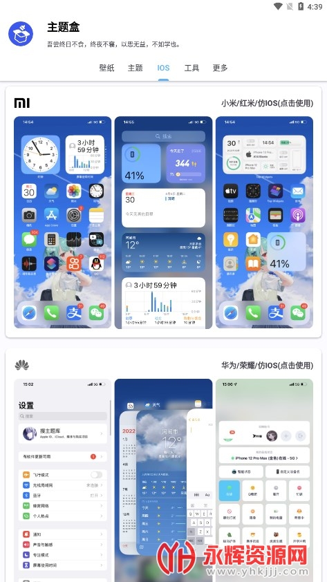 主题插件:于途主题盒提供了大量品牌手机主题,包括华为、小米、vivo、苹果等主题,用户可以自由选择并一键应用,让手机焕然一新。