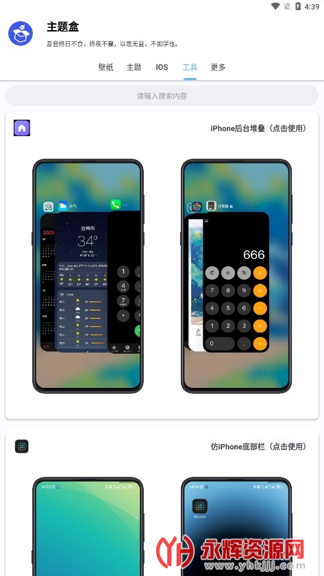 于途主题盒是一款非常实用的移动端多功能安卓主题盒应用软件。用户可以在该软件上找到丰富的主题插件、美化状态栏、壁纸和桌面等功能,实现全局自定义,为用户解锁更多的美化内容,开启个性化的玩机乐趣。于途主题盒提供了丰富多样的主题插件以及自定义功能,让用户能够根据个人喜好打造个性化的手机界面。无论你使用何种品牌的手机,于途主题盒都能满足你的需求,并带来全新的玩机乐趣。如果您对这款软件感兴趣的话,不妨来永辉资源网下载体验一番吧!