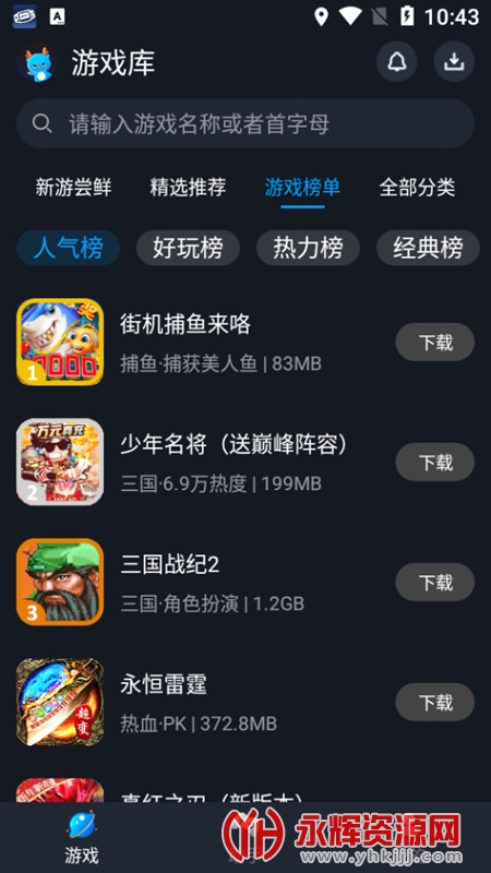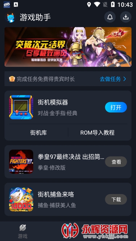 - 丰富的游戏资源:软件内置了BT游戏、街机游戏以及传奇、仙侠、武侠等多个游戏类型,能够满足不同用户的需求。