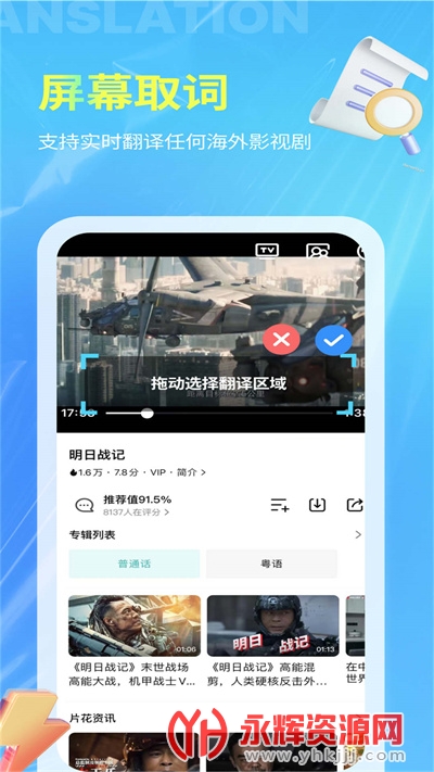 芒果字幕翻译是一款移动端字幕翻译应用软件。它的主页面简洁明了,可以帮助用户翻译多种类型的影视作品,并具备字幕实时翻译功能。软件支持多种文本识别模式,满足不同用户的字幕翻译处理需求。此外,芒果字幕翻译支持一键拍照翻译,翻译速度快、准确,且不影响观看体验,还可自定义翻译风格搭配选择,并支持实时翻译字幕的能力,让用户在观看生肉视频时也能及时进行字幕翻译。如果您对这款软件感兴趣的话,不妨来永辉资源网下载体验一番吧!