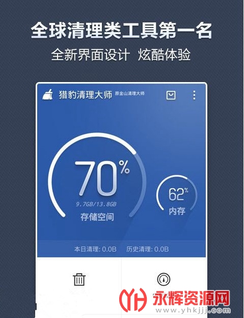 猎豹清理大师是一款安卓手机清理工具,旨在为用户提供高效的手机清理和优化服务。该应用支持清理智能手机上的应用缓存、残余程序文件、历史痕迹以及应用程序安装包,同时还可以结束当前运行的进程来释放RAM空间,延长电池使用时间。此外,猎豹清理大师还提供隐私处理功能,保护用户的隐私信息。如果您对这款软件感兴趣的话,不妨来永辉资源网下载体验一番吧!