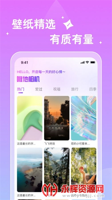 唯他相机是一款专业级的移动端手机摄影应用软件。这款软件旨在帮助用户拍摄出极致精美的照片。无论您是摄影爱好者还是只是喜欢记录美好瞬间,唯他相机都能为您提供全面的拍摄工具和创意效果,让您的照片更加出众。唯他相机还支持实时编辑功能,用户能够随时对照片进行裁剪、调整和修饰,满足个性化的需求。如果您对这款软件感兴趣的话,不妨来永辉资源网下载体验一番吧!