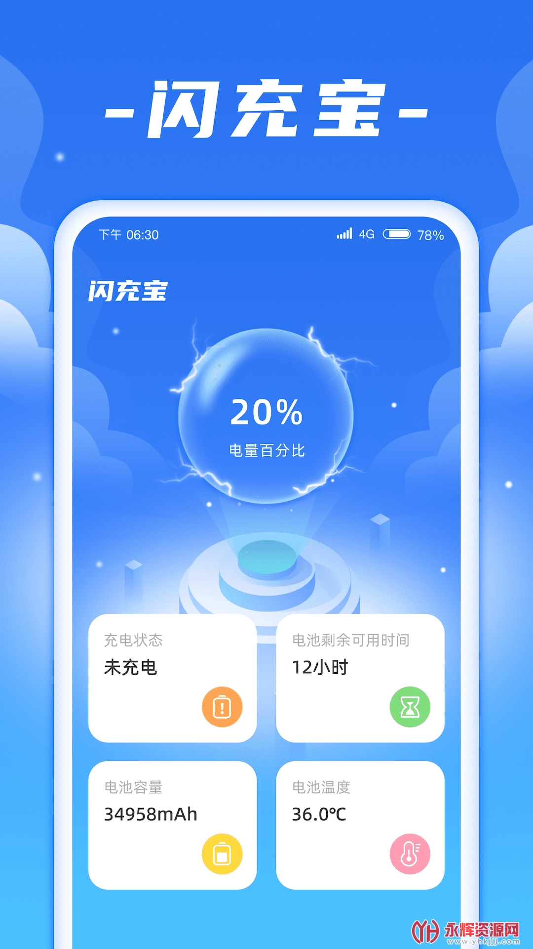 闪充宝是一款非常完善且好用的移动端手机充电管理应用软件。用户可以随时使用这款软件在线查看每日电池变化情况,并通过该软件优化充电过程,提高整体的充电服务。闪充宝能够根据设备信息提供更好的优化建议,提高充电效率,还能够统计所有的充电时间和效率,让用户随时了解自己的手机充电情况。如果您对这款软件感兴趣的话,不妨来永辉资源网下载体验一番吧!