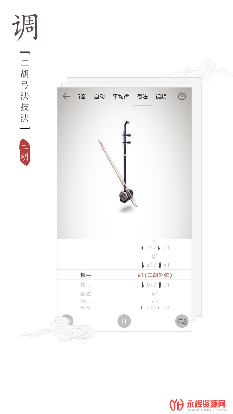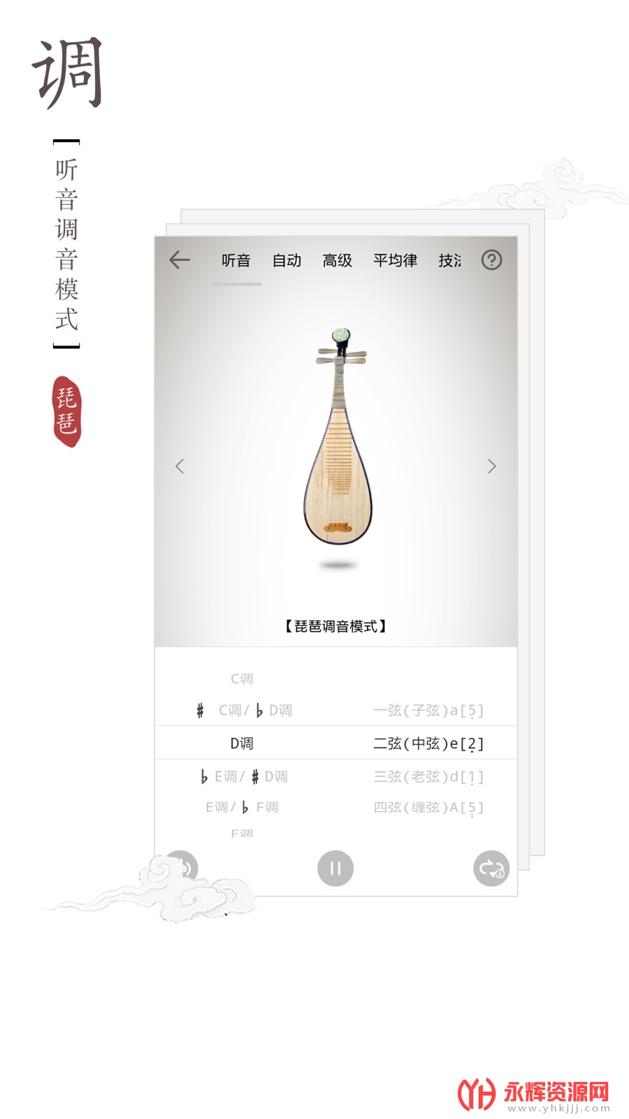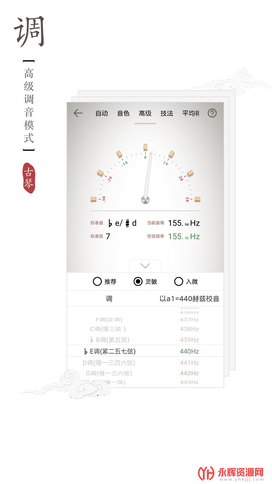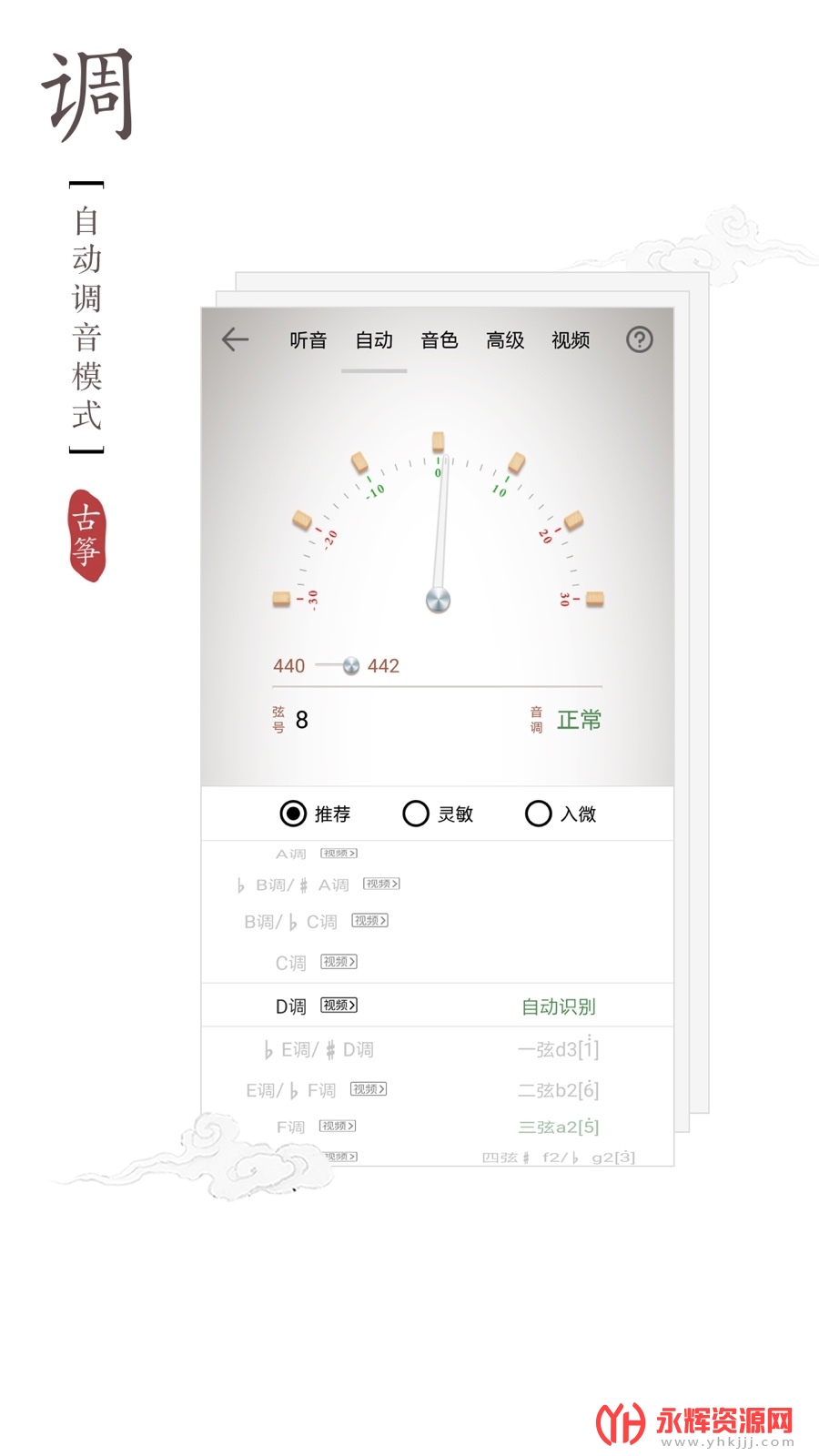 民乐调音器是一款非常好用的移动端智能调音应用软件,专为解决中国民族乐器校音和定弦难题而设计。这款软件以真实音色采样数据为基础,设计校对各类民族乐器的音准,使调音和定弦的过程更加迅速准确。民乐调音器能够提供调音色模式功能,让用户可以效仿专业演奏家的音色,根据乐曲需要塑造出纤柔灵巧、深沉醇厚、优雅甘美或英雄气概等不同音色效果。如果您对这款软件感兴趣的话,不妨来永辉资源网下载体验一番吧!