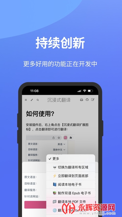沉浸式翻译是一款领先的多功能翻译助手,为用户提供高效、准确的语言互译体验。不仅支持实时语音翻译和图像翻译,还融合了智能语音助手功能,让您的翻译体验更加便捷无忧。沉浸式翻译致力于为用户提供极致的翻译体验。不仅在语音翻译和图像翻译方面引领潮流,还通过智能语音助手功能为用户提供更多实用服务。无论您是旅行探险、学术交流还是商务洽谈,沉浸式翻译都将成为您最好的伙伴,帮助您畅享全球沟通的便利。如果您对这款软件感兴趣的话,不妨来永辉资源网下载体验一番吧!