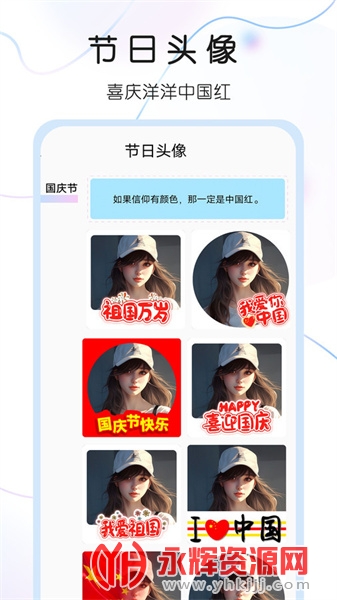 节日头像功能:通过预设的节日主题,用户可以为即将到来的节日制作相应的头像,烘托节日气氛。