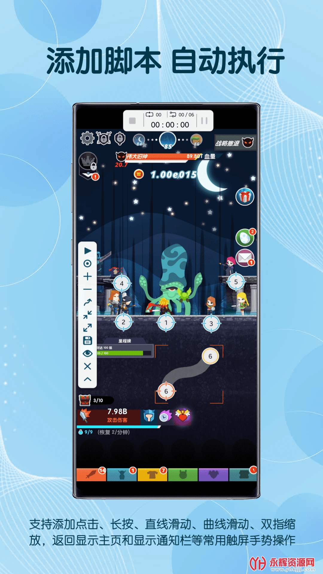 图灵自动点击器是一款非常好用的移动端掌上自动点击器工具应用软件。这款软件功能强大,可以根据自己的需要进行自动化的屏幕手势操作,也可以轻松录制自己的手势、添加自定义操作,并定时执行任务,操作流畅,功能丰富,使用体验极其优秀,而且任何广告无任何限制。如果您对这款软件感兴趣的话,不妨来永辉资源网下载体验一番吧!