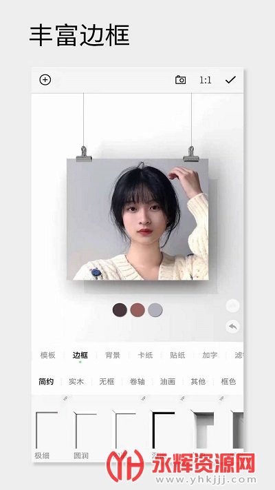 3、素材丰富:内置大量精美的相框样式和图文资源,用户可以灵活选择,满足不同创作需求。