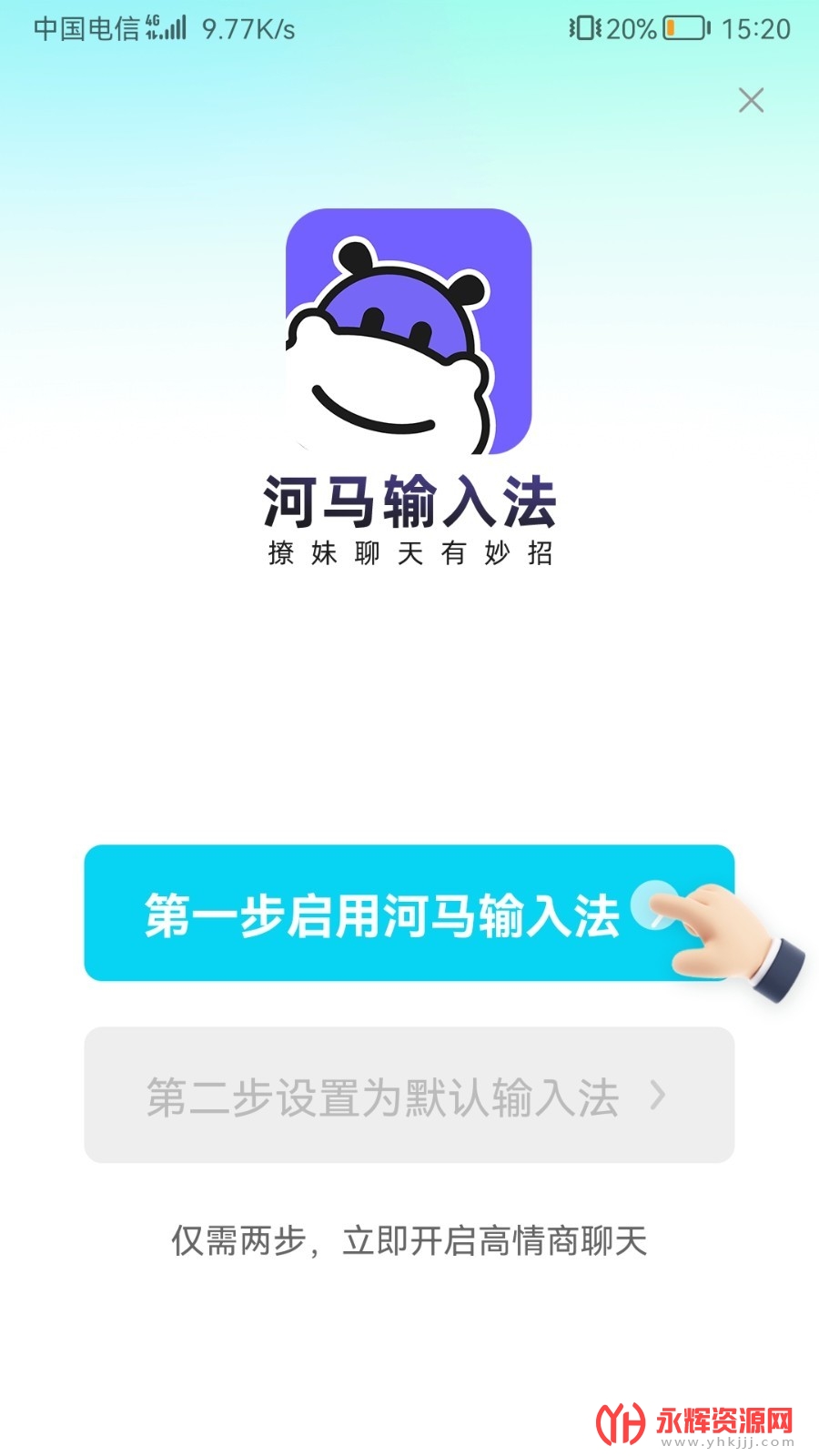 方便快捷的设置 - 河马输入法的设置非常简单,用户只需要两步操作就可以把输入法成功设置在手机内。