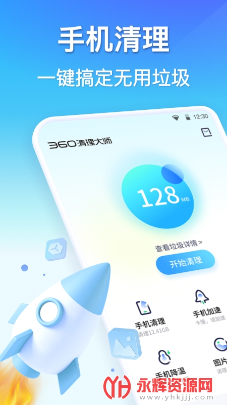 360清理大师是一款完全免费且非常好用的移动端掌上手机加速与空间清理应用软件。该软件能够强力加速使手机运行更流畅,一键清理快速解决空间不足问题,还提供视频指导教程,清理方法更直观,让用户轻松玩转清理大师!360清理大师拥有70+条垃圾清理规则,能够全面清理手机中的垃圾文件,释放存储空间,还能一键操作,清理简单快捷,即使对于新手也能轻松上手。如果您对这款软件感兴趣的话,不妨来永辉资源网下载体验一番吧!