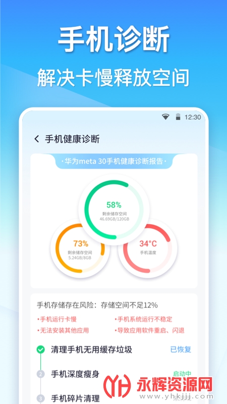 加速优化:清理手机内存、运存、缓存等,加快手机运行速度,提升系统性能。
