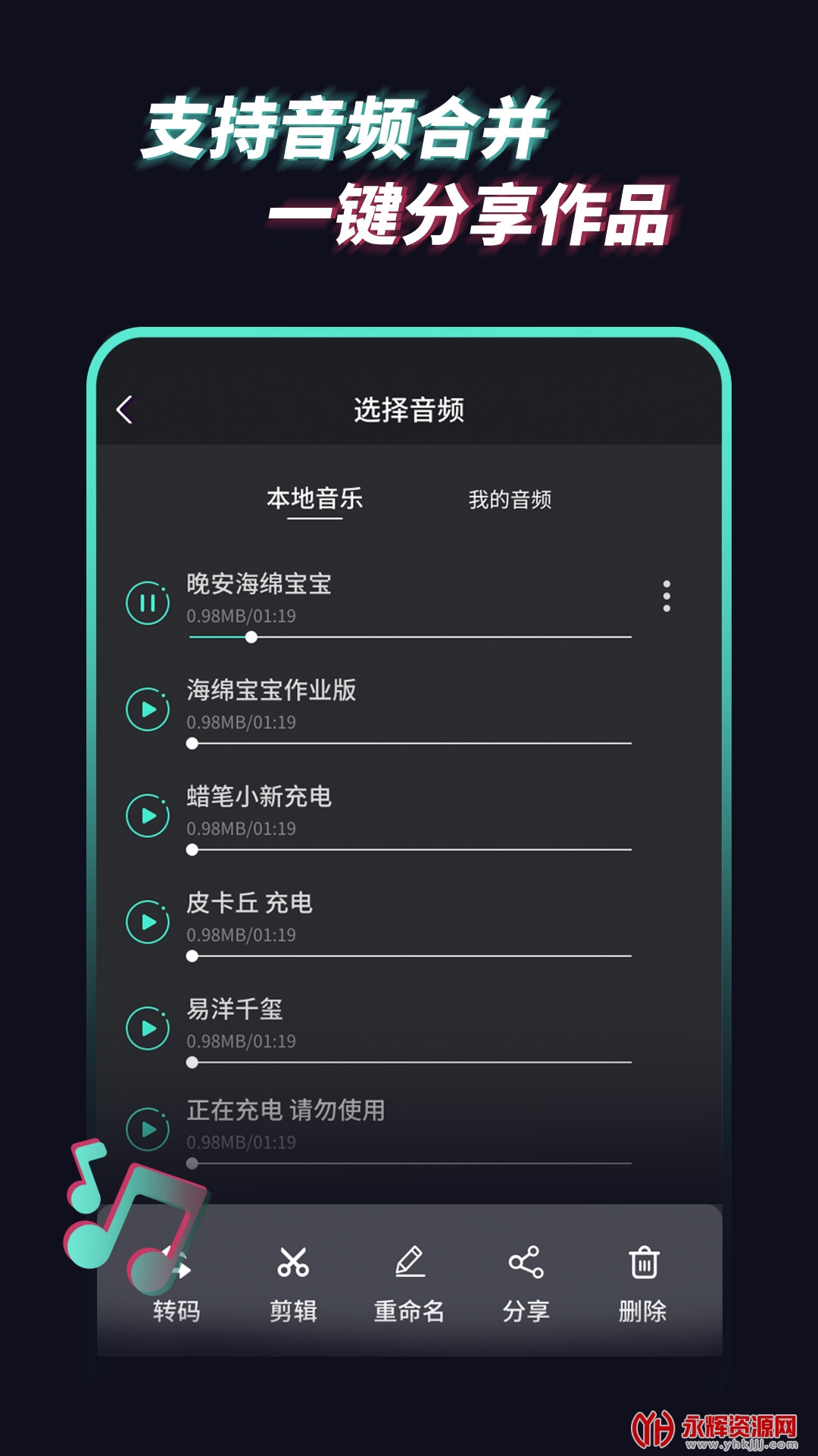 音频合并:支持将多个音频文件进行合并,让用户轻松实现多段音频的无缝拼接。