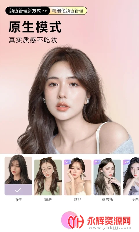 美颜相机是一款专为海外用户开发使用的移动端掌上手机p图美颜相机类应用软件,由美图公司荣誉打造出品。这款应用软件拥有超多特效炫酷素材、模板、滤镜等日常常用的一些资源,功能全面,使用群体众多,已拥有超过4亿用户。每月产生照片38.7亿张,让您效果超自然的自拍神器,一秒拥有好气色!如果您对这款软件感兴趣的话,不妨来永辉资源网下载体验一番吧!