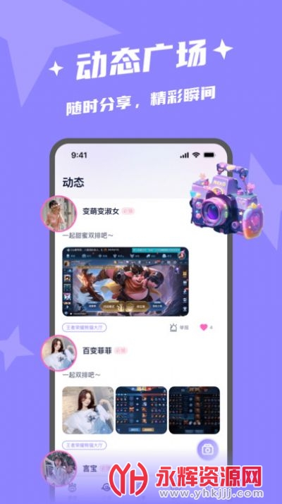 3、社交互动:通过动态广场和视频分享功能,与其他玩家交流互动,扩展社交圈子。