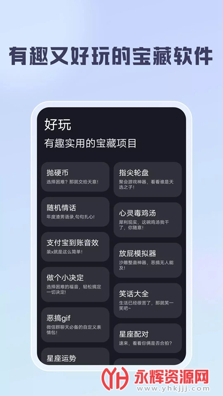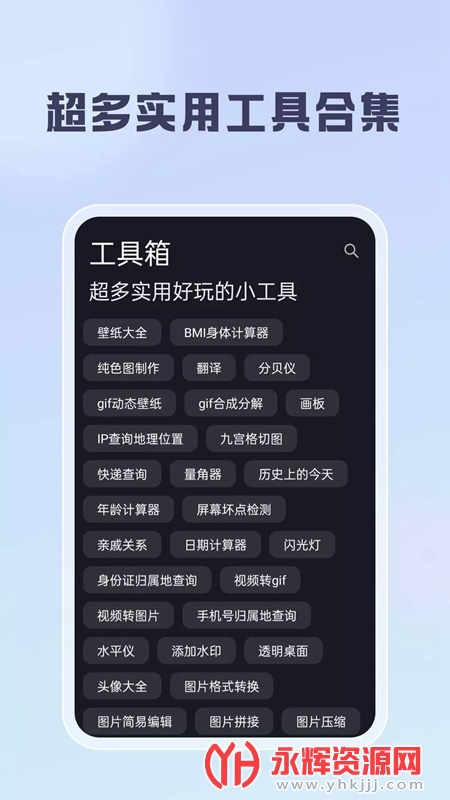 聪明云工具箱是一款功能强大、智能实用的移动端掌上手机软件工具集合应用软件。这款应用软件旨在为用户提供方便、高效的工作和生活辅助,能够解决各类日常烦恼,提升工作效率,让用户享受愉悦的数字化生活。聪明云工具箱拥有丰富的功能模块,包括文件管理、数据备份、网络资源整合、办公工具、个人健康管理、娱乐休闲等。用户可以根据自身需求选择所需的工具模块,定制个性化的使用体验。如果您对这款软件感兴趣的话,不妨来永辉资源网下载体验一番吧!