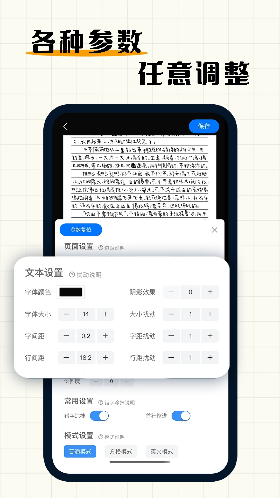 手写模拟器支持字间距自由调整、字体大小扰动以及笔画横向和纵向偏移的随机扰动,确保生成的手写文字更加真实、生动。此外,手写模拟器还提供丰富的手写字体和背景选择,用户还可以自定义上传自己喜爱的字体。
