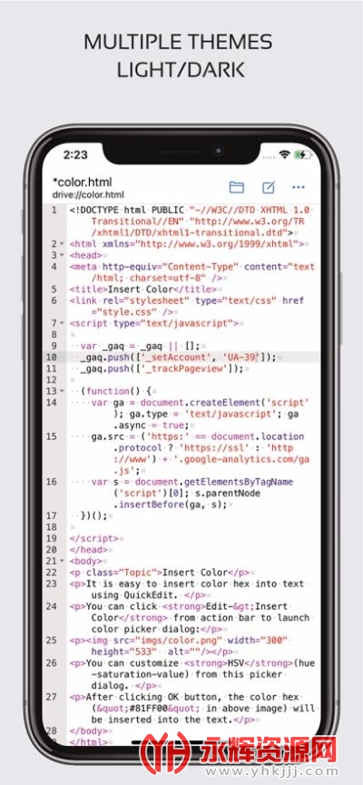 与此同时,代码编辑器还支持FTP和WebDAV,方便开发者在移动设备上进行文件的传输和访问。不仅如此,代码编辑器还提供了丰富的主题和代码高亮风格,让用户可以根据自己的喜好进行个性化设置。